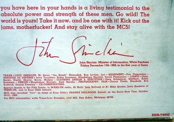 To make matter worse, the slogan was heavily featured in the album art. The original release repeated the ”kick out the jams, Motherfuckers!” line as part of John Sinclair’s write-up on the inside of the gatefold album cover. Expletives were not yet normal on albums, whether in audio or written form. It they were there, they were a bit tucked away.